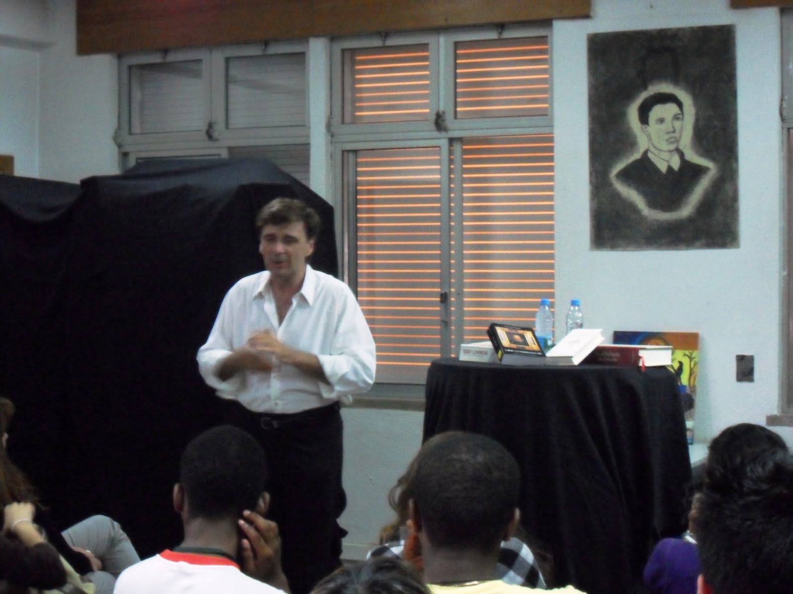 "Mais uma fonte que secou. (hoje não há mais fontes)" - diz Lurdes Cardoso (professora), em jeito de desabafo, revelando desta forma o seu pesar pelo desaparecimento físico do escritor que nos serviu de inspiração para alguns, ainda que escassos (muito menos do que o teríamos desejado), encontros de professores que decidiram partilhar leituras relacionadas com a temática abordada no último livro de José Saramago: "Caim". Sendo já tão poucos os assuntos que suscitam um debate sério e realmente participado, acreditámos ser este um tema com potencial interesse, capaz de irradiar polémica e alimentar reflexões provenientes de diversos sectores da sociedade. Porém, passado o ruidoso impacto que acompanhou o lançamento do livro, a importância do assunto cedeu à pressão da novidade e imediatismo das notícias. Outrossim, o nosso "clube de leitura", dinamizado pelo professor José Carlos Almeida não conseguiu resistir aos imperativos do tempo e às exigências de uma prestação continuada para alimentar o blog criado para o efeito, não se esfumando porém o interesse pela partilha de leituras, encetado com a discussão desta obra de Saramago de que destacamos um excerto, pouco representativo da temática nuclear mas transversal a todos os textos e, em nosso entender, manifestação da dimensão eminentemente metalínguística da sua escrita: