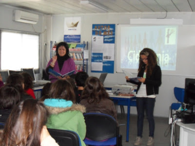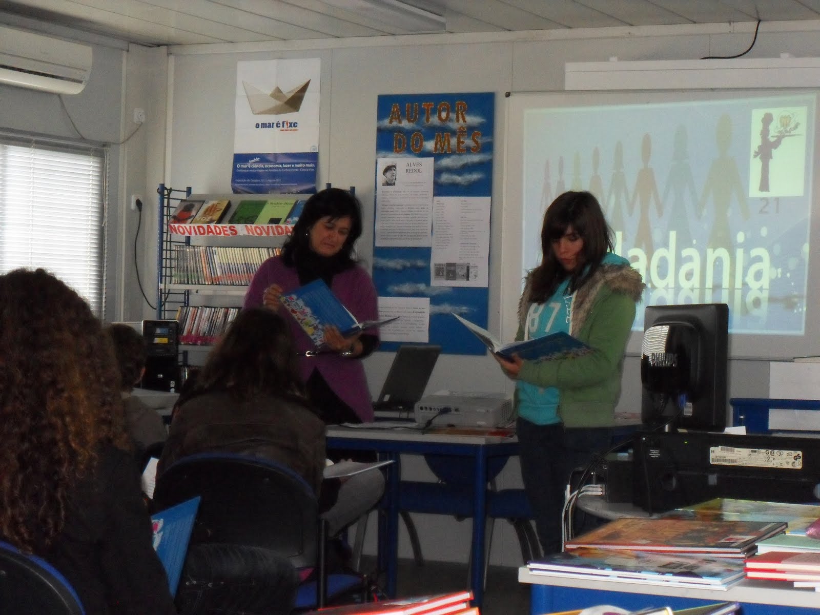 No dia 6 de Dezembro, quase em vésperas da comemoração da Declaração Universal dos Direitos do Homem, a Drª Cláudia Outeiro (IAC ) dinamizou uma sessão sobre Cidadania, enquadrada no trabalho que tem vindo a desenvolver com a turma 2 do 8º. ano, no âmbito da área disciplinar de Formação Cívica. Os alunos leram e conversaram sobre o conteúdo das histórias: "Sem título" de Inês de Barros Baptista; "Uma-Poça-Quase-Lago-Quase-Mar" de Raquel Palermo e a "Receita para fazer um ninho" de José Fanha - textos incluídos na coletánea "Histórias com Direitos".