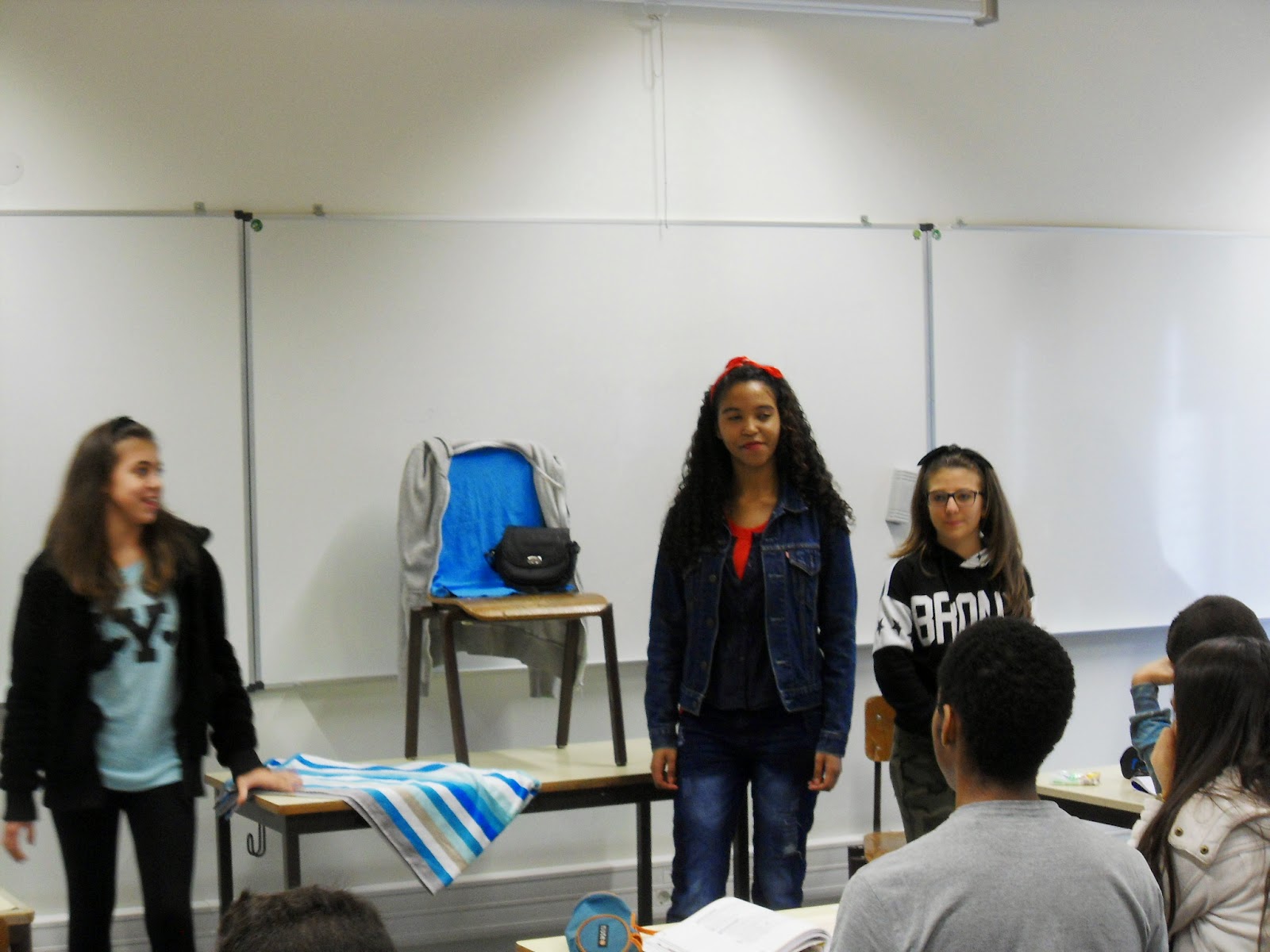 Três grupos de alunas da turma 7 do 8º ano apresentaram trabalhos de texto publicitário,realizados na aula de Português com a professora Lurdes Sanches, para os