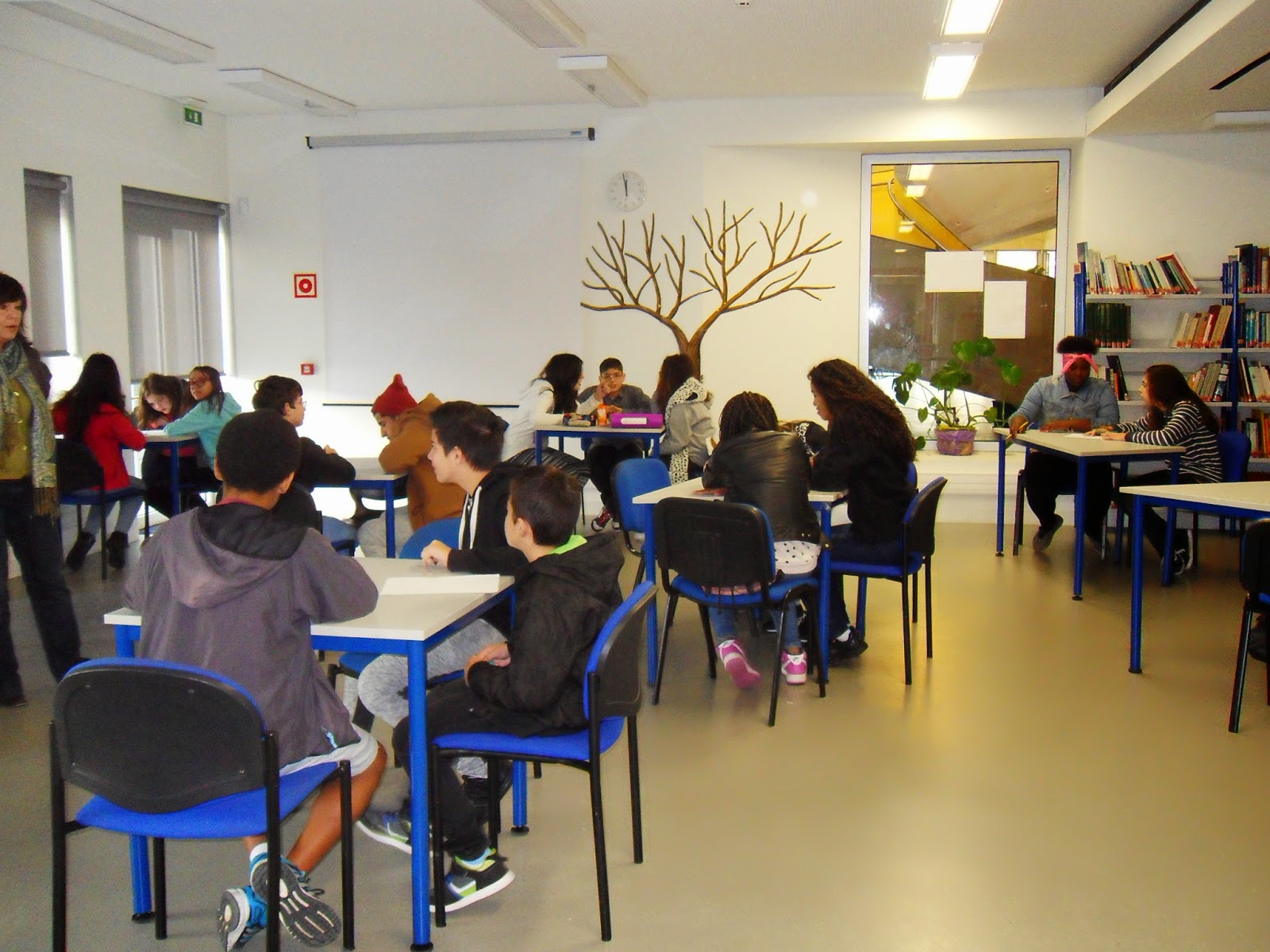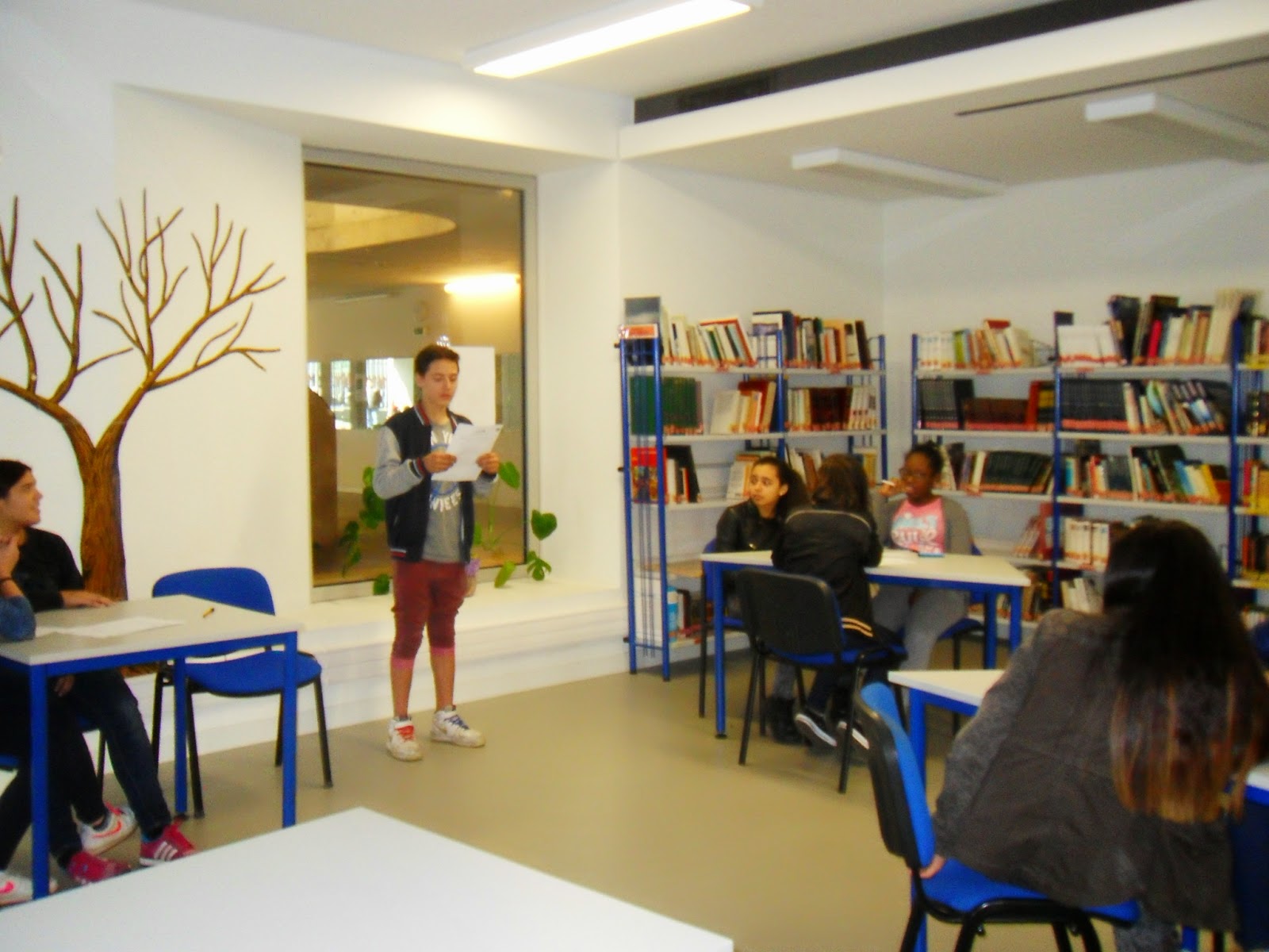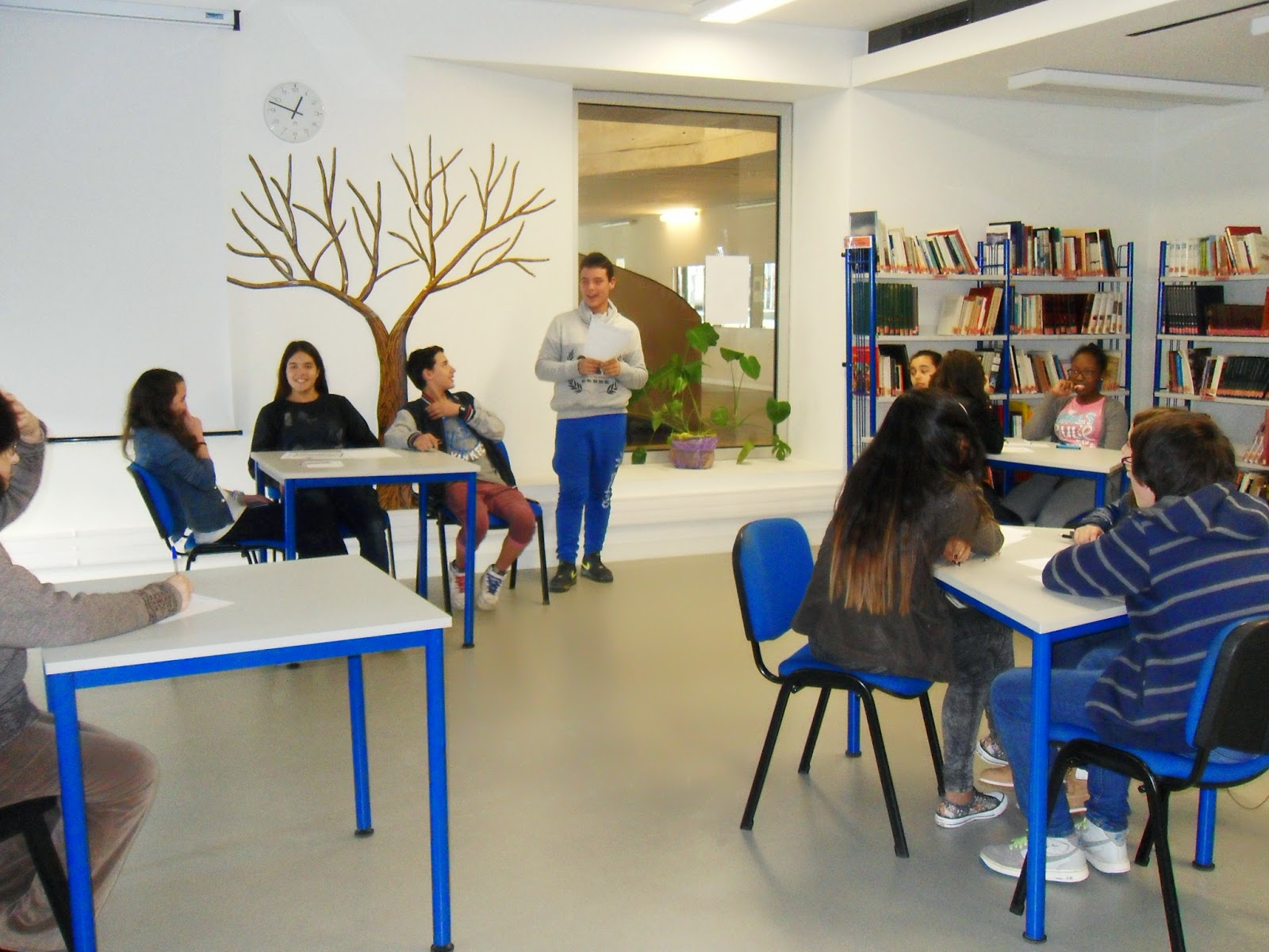 Juntaram-se, hoje, no último dia de aulas do 1º período, as turmas 2 e 3 do 7º ano para uma conversa sobre leituras. Apesar de uma certa timidez e de alguns alunos não terem concluído a leitura dos livros sobre os quais se propunham falar, foi possível estabelecer uma troca de opiniões e ouvir alguns excertos das obras lidas.