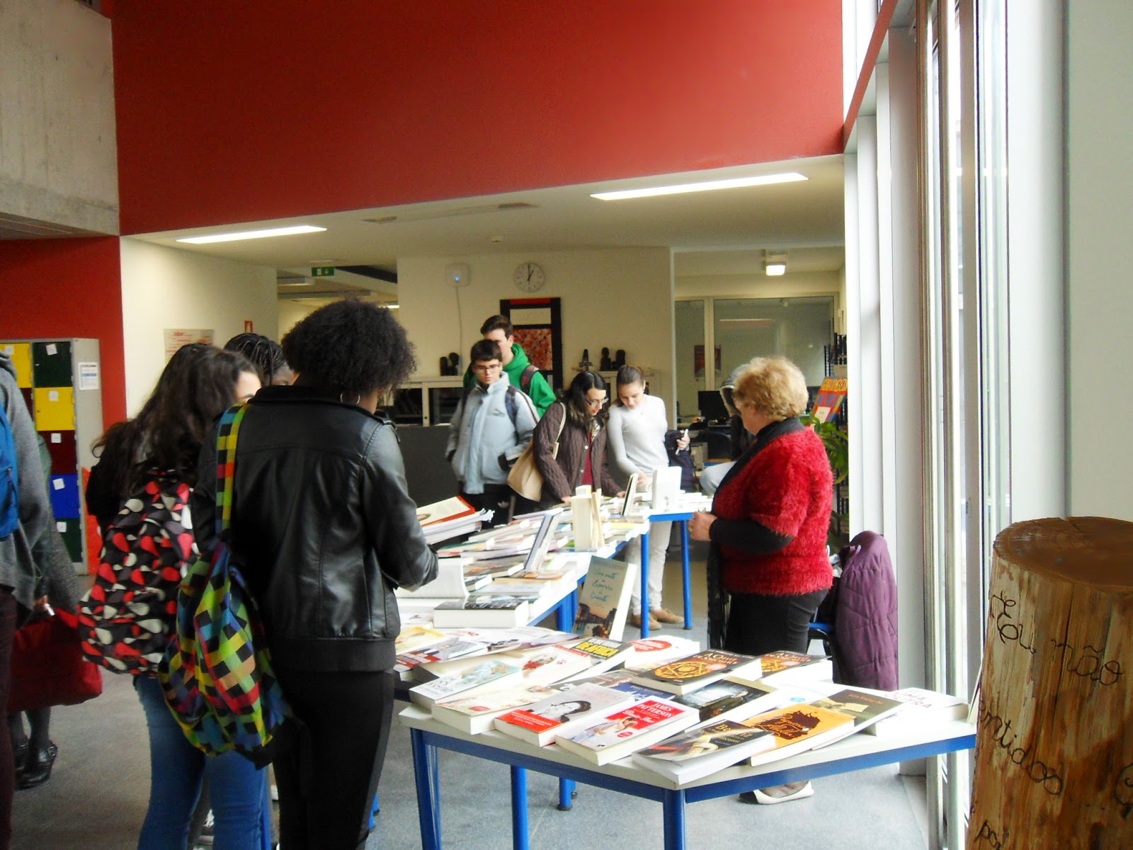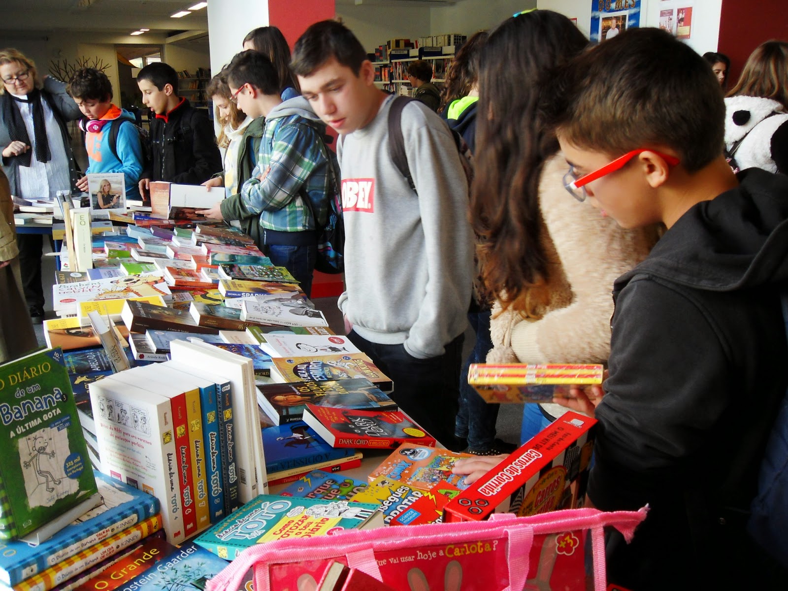 À semelhança dos anos anteriores, a biblioteca encheu-se de alunos que folhearam, comentaram e, alguns, poucos, até compraram um livro do seu agrado ou para darem como prenda de Natal. Apesar desta crise que cerceia as nossas vontades e molda os nossos gostos, a Feira do Livro, organizada pela Livraria Palavras de Culto com o apoio do "grupo da biblioteca, não deixou de ser uma "festa" e sobretudo uma oportunidade para falar de leituras, envolvendo alunos e professores de Português das turmas do 3º ciclo e do 10º ano .