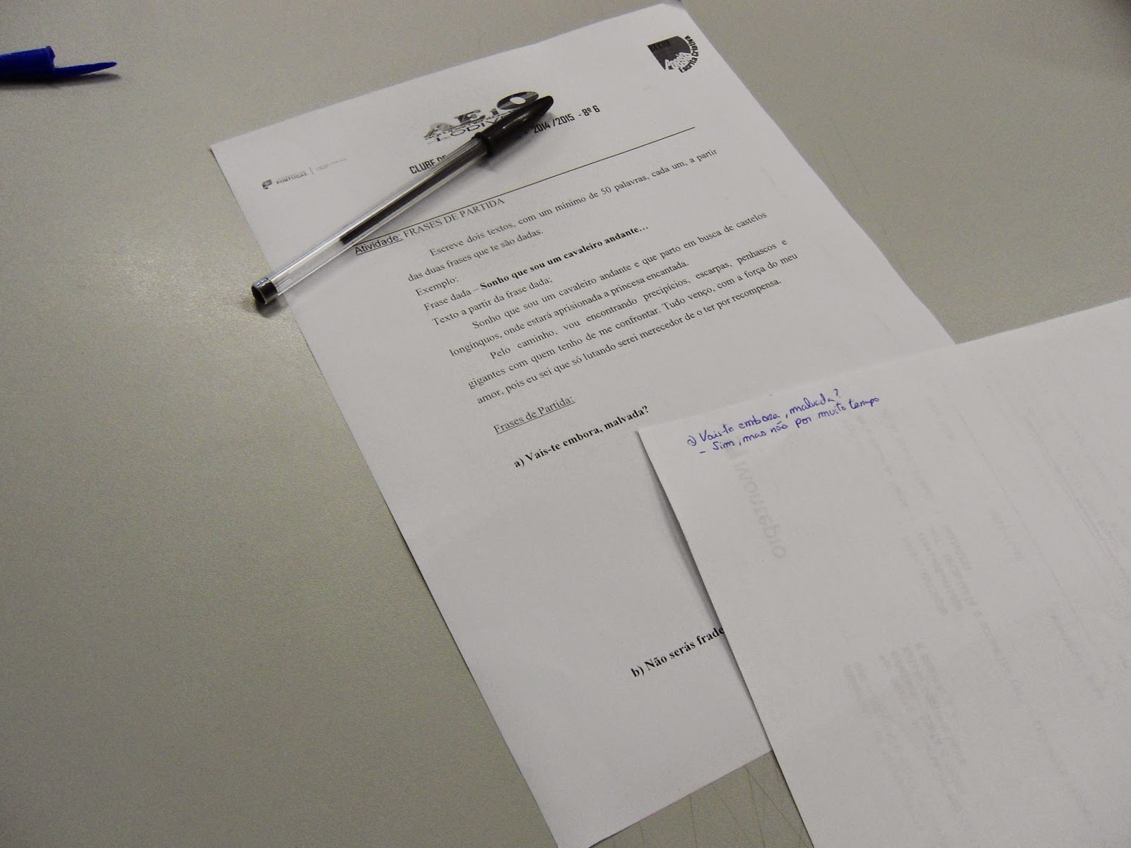 O exercício proposto aos alunos da turma 6 do 8º ano consistia em escrever dois pequenos textos, com cerca de 50 palavras cada um, a partir de uma dada frase e tendo como objetivo principal estimular a criatividade, associada a uma escrita correta e bem estruturada.