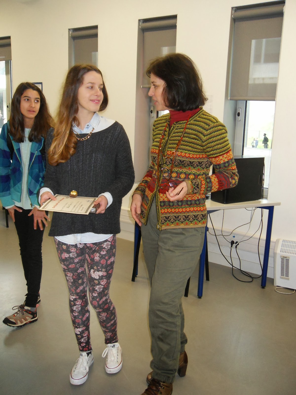 Hoje, segunda-feira, dia 20 de janeiro, fez-se a entrega dos prémios e certificados a estes alunos e mais dois outros que tiveram boas classificações e que ficarão como "suplentes", para o caso de surgir algum impedimento aos colegas, no sentido de participar na fase distrital em representação da escola.