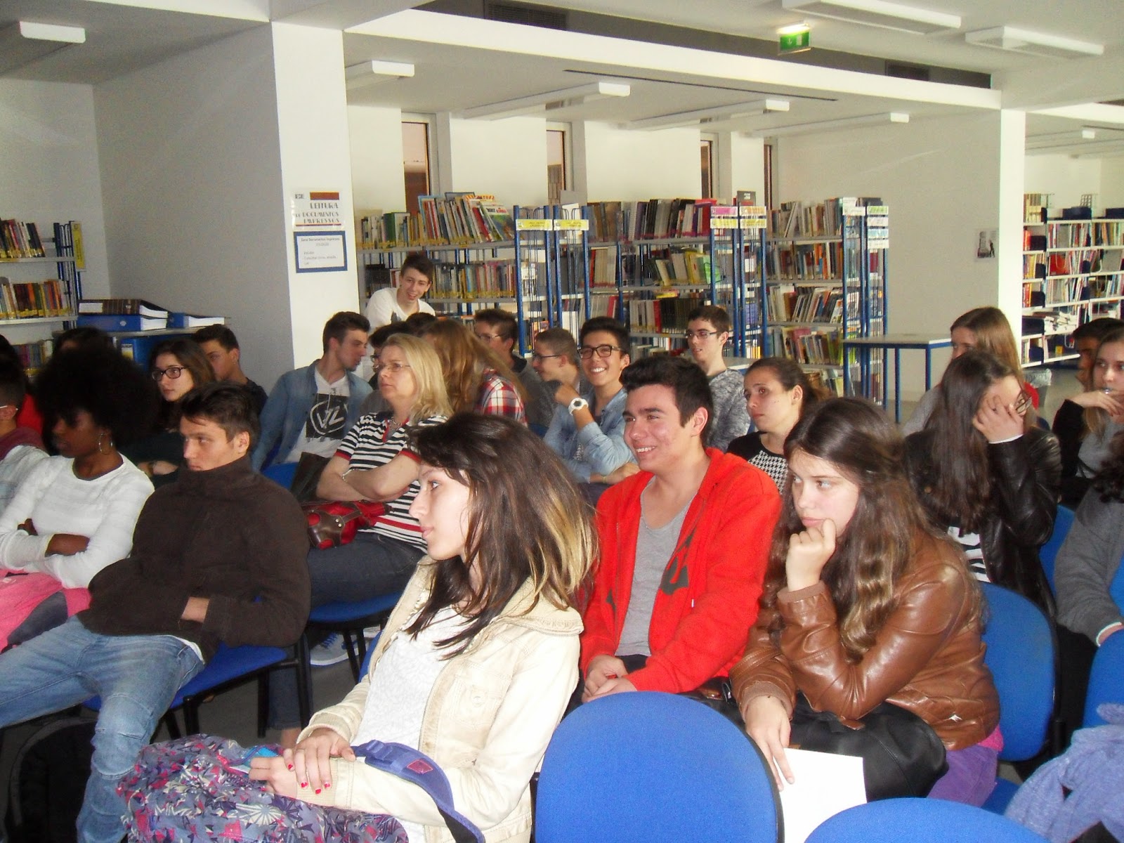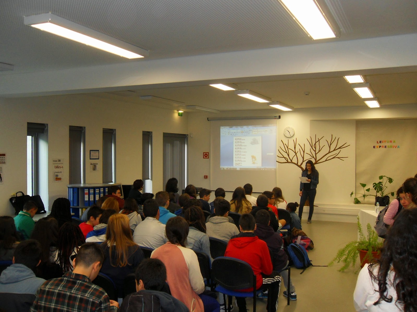 Para assinalar o Dia Mundial do Livro... organizámos uma sessão com as turmas 1 e 3 do 10º ano, com o intuito de levar o 10º 1 a partilhar o projeto de trabalho que têm em curso na disciplina de português: " Escrevendo um conto..." e falar um pouco das leituras e gostos literários dos alunos.