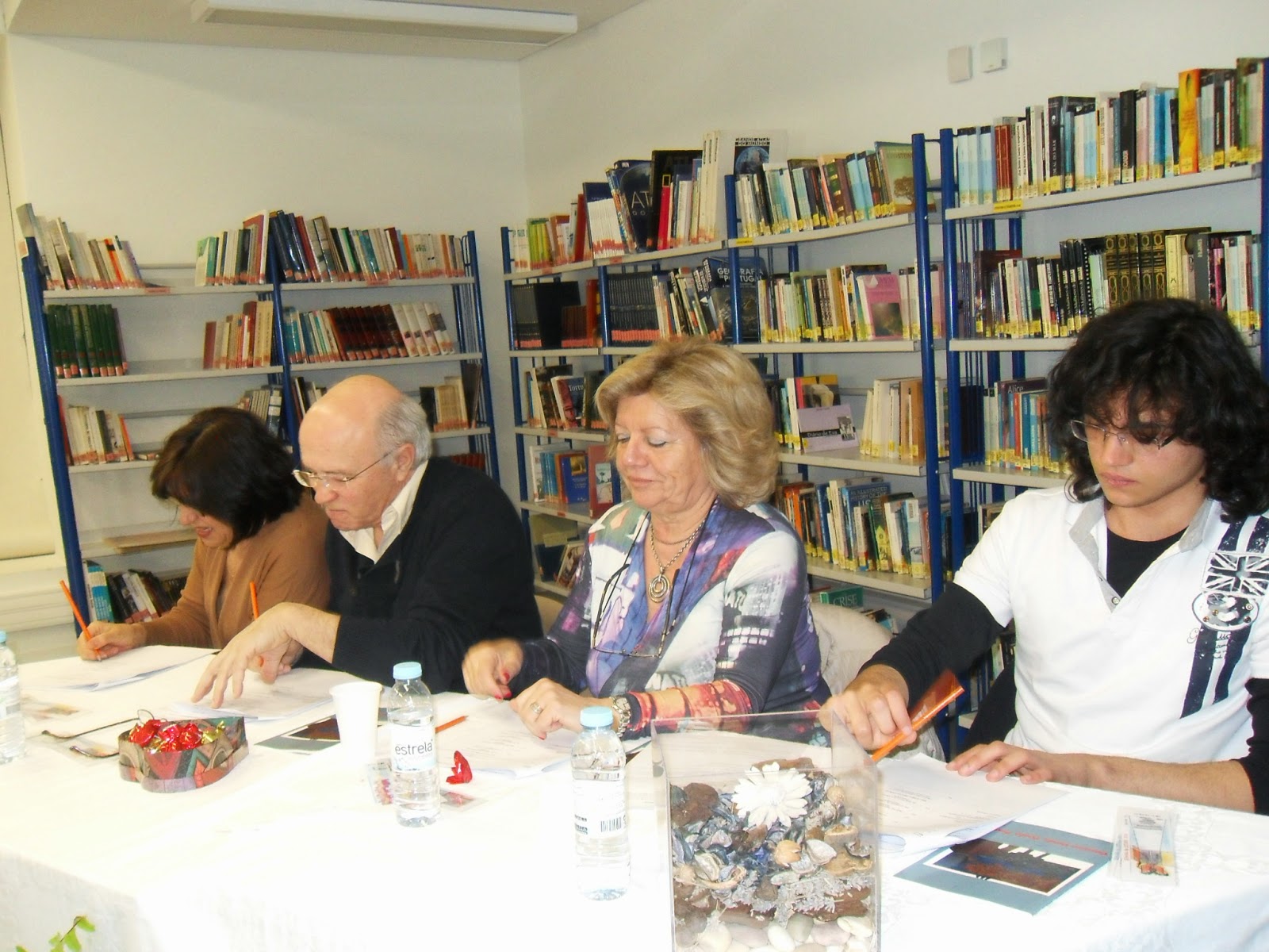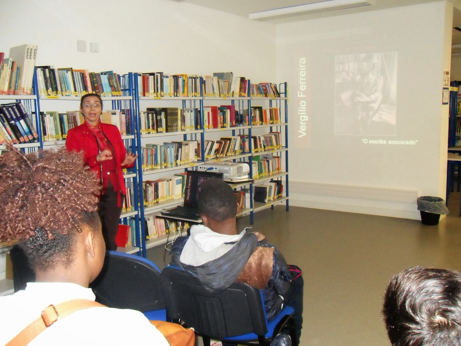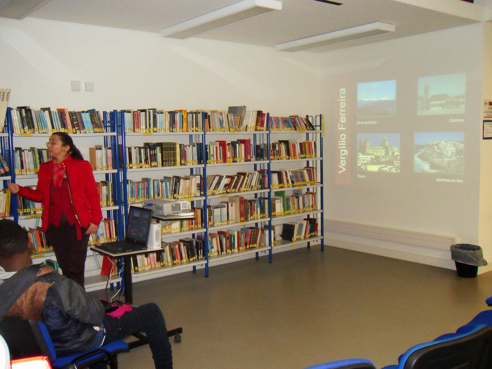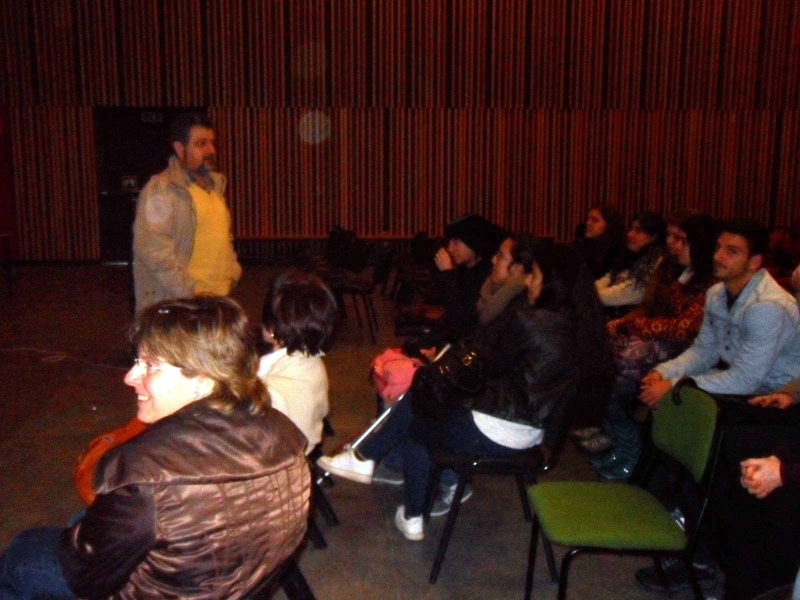 Depois de um rápido enquadramento esboçado pelo professor João Pedro Aido, tomaram a palavra as alunas Ana Carolina e Maria Rita, explicando, de forma muito clara e sucinta, o caminho seguido para a construção dos seus contos: De relevar o facto de ambas terem referido a importância das imagens como fonte de inspiração para a escrita: fotografam mentalmente as personagens e os objetos que constituem o núcleo central da história que querem contar.