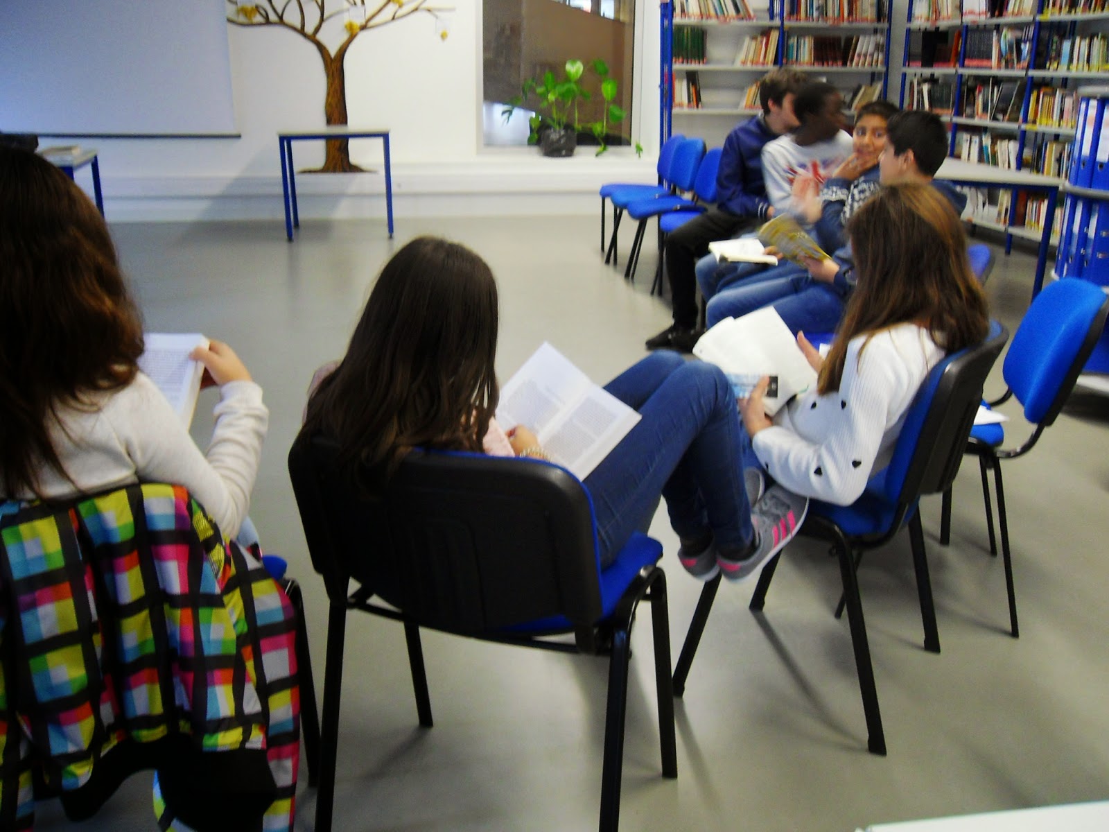 Num segundo momento a turma escolheu livros para requisitar, aproveitando a mostra que estava exposta de acordo com um catálogo que identificava diferentes tipos de leitores . Alguns alunos, contudo, preferiram procurar outros titulos nas estantes. Todos aproveitaram os escassos minutos que restavam até ao final da aula para iniciar a leitura dos seus livros.