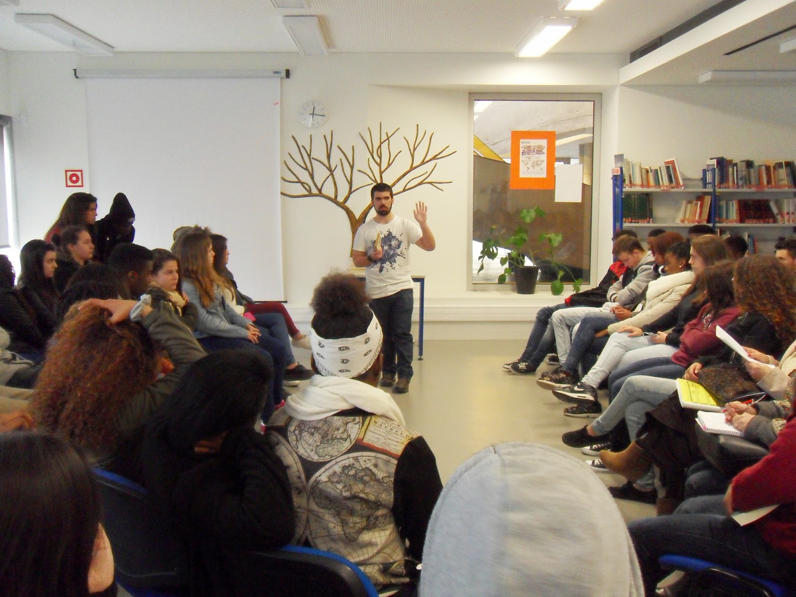 Estas e outras questões foram abordadas na sessão dinamizada pela professora Amélia Lopes com as turmas 2 e 5 do 8º. ano, no âmbito da disciplina de Cidadania, e que se iniciou com a leitura de um poema de Maria Alberta Menéres, a autora do mês de março.
