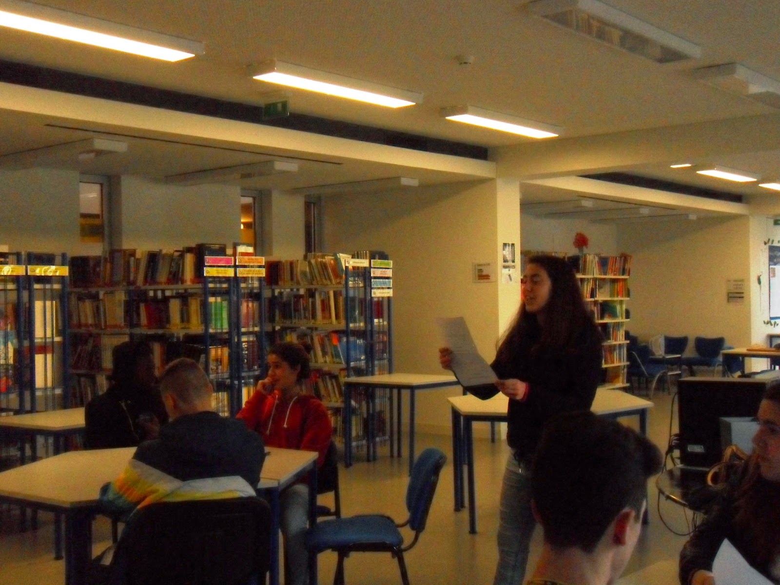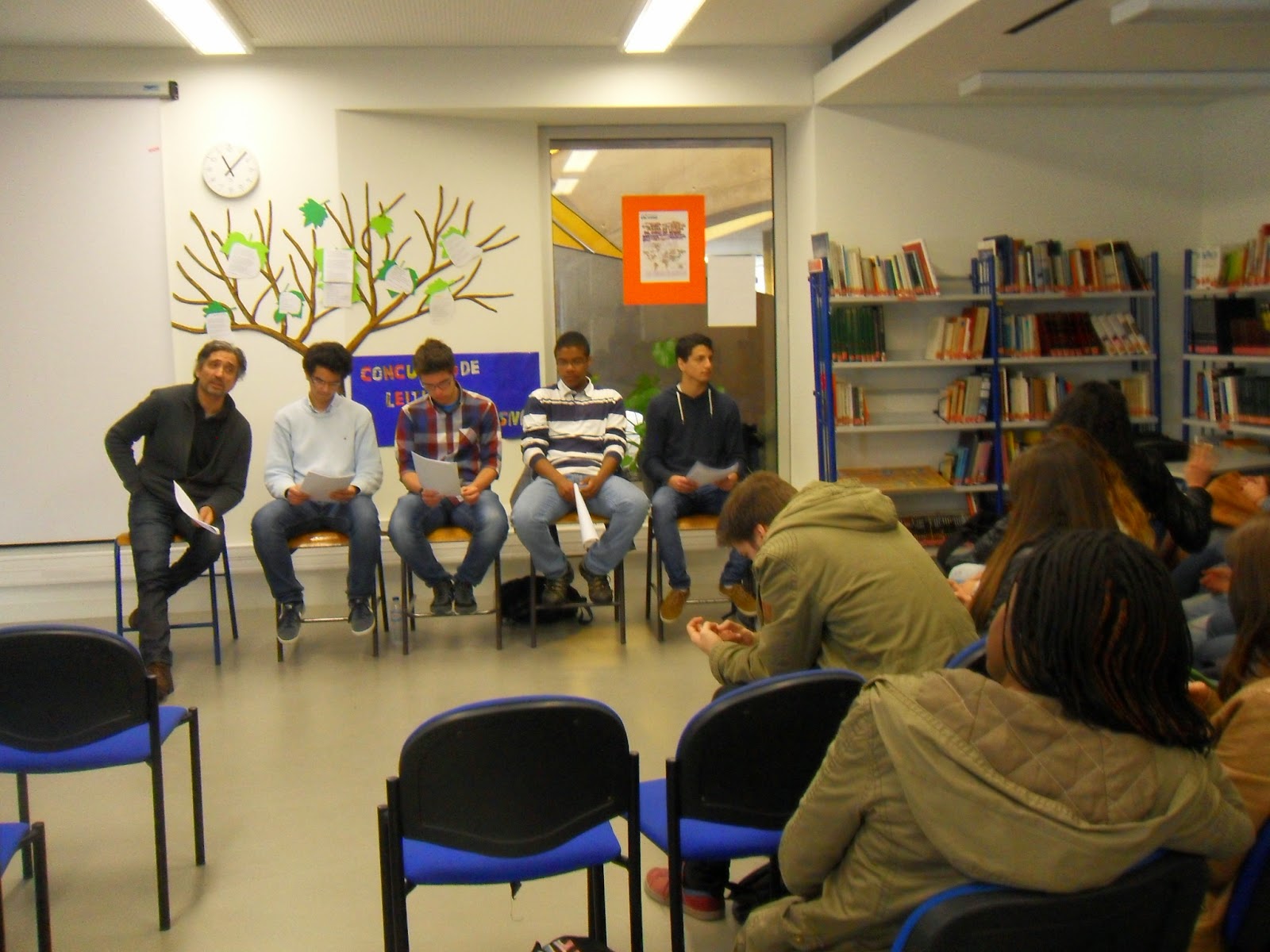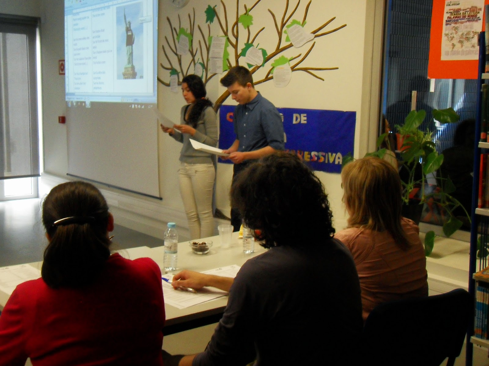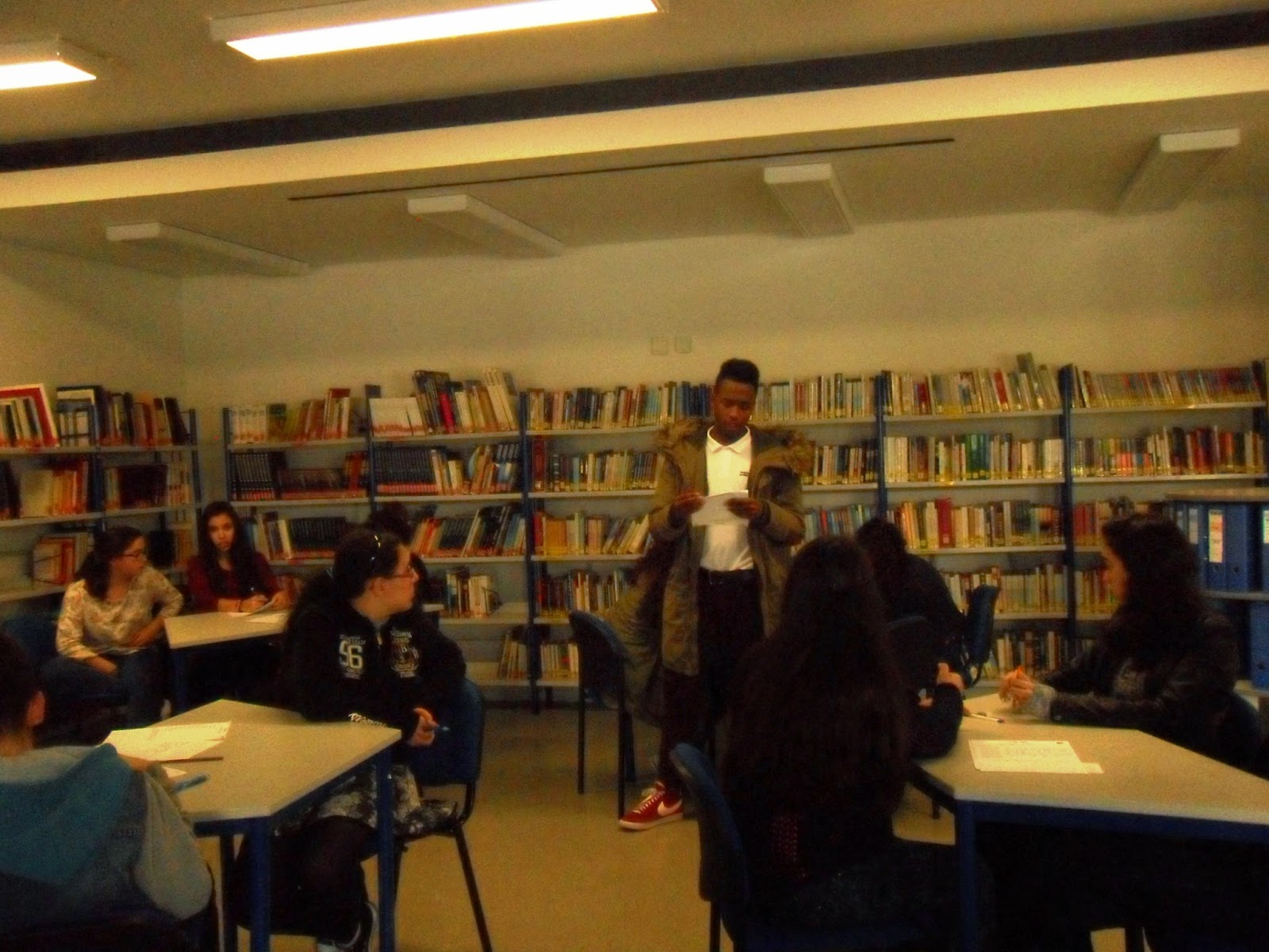 Não foi fácil convencer os alunos a partilhar com os colegas as suas impressões sobre os livros lidos, mesmo porque, alguns, já o tinham feito há bastante tempo mas, mesmo assim, conseguimos ter cerca de uma dúzia de apresentações de livros tão diferentes como "A sombra do vento" de Carlos Ruiz Záfon; "Viagem ao centro da terra" de Julio Verne; "Khady a Mutilada", " No teu deserto" de Miguel Sousa Tavares, entre outros.