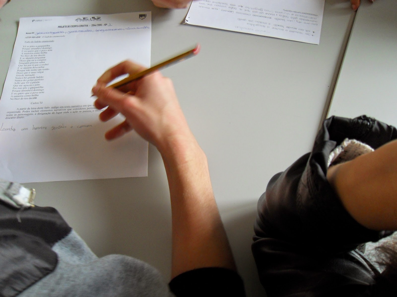 Os alunos da turma 7 do 10º ano receberam um texto poético da autoria de Carlos Tê (cantado por Rui Veloso), para transformarem numa narrativa, uns grupos, e numa notícia de imprensa, outros grupos. O resultado consistiu num conjunto muito diverso de textos, fazendo jus às características e objetivos da atividade.